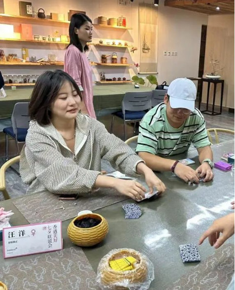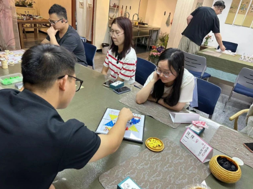 活動設(shè)置了“香牌制作、棋牌游戲”等趣味互動游戲。在香牌制作的活動中,木緣空間主講老師從代表性的香料及香具的運用到香牌的配方和制作工序,輕聲細語娓娓道來。隨后,老師分發(fā)調(diào)配好的香粉和粘土,安排大家以小組為單位參加比賽,大家互幫互助共同完成了作品,獲勝者獲得了古琴試聽課。